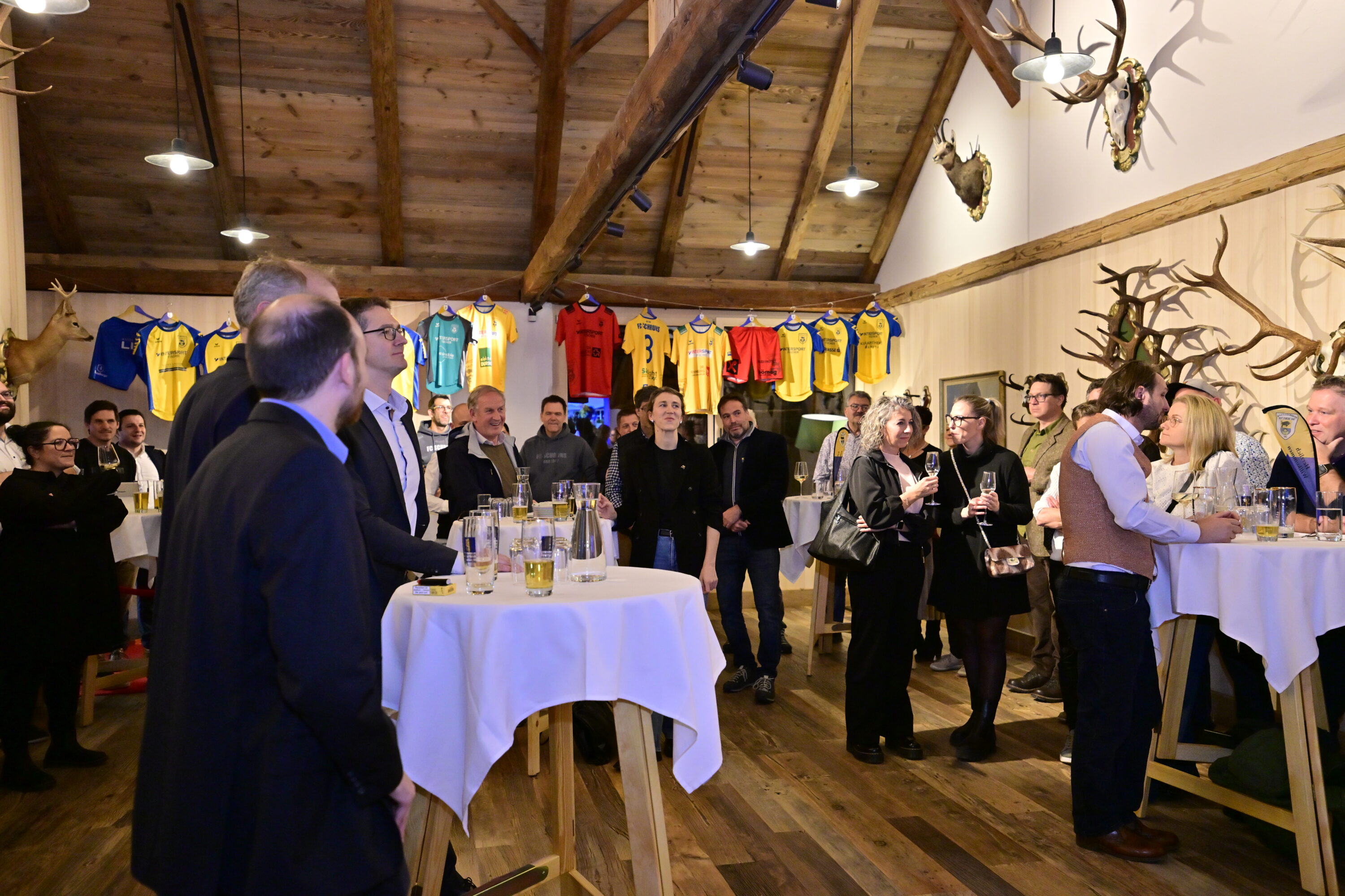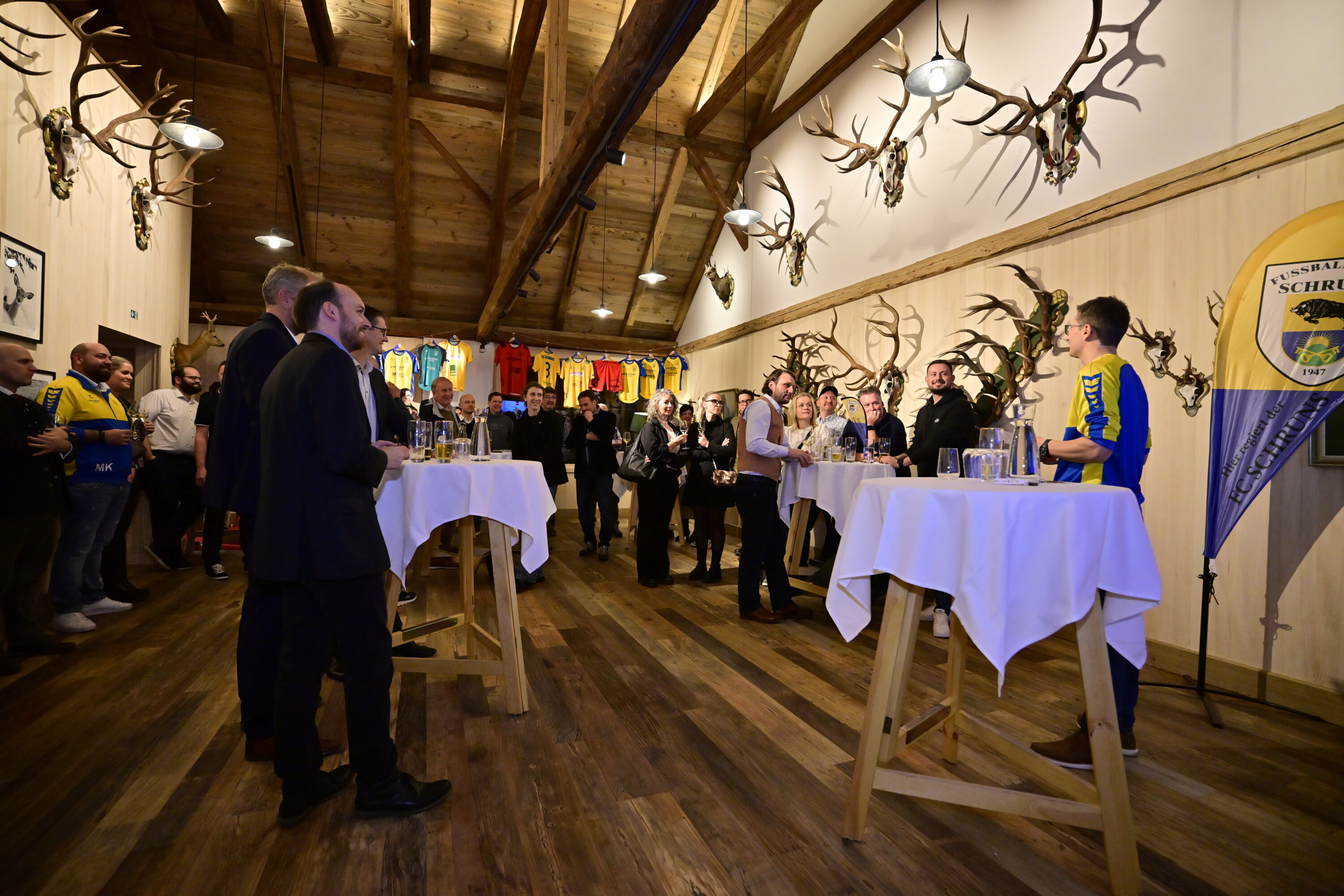 Der Intersport Fischer FC Schruns lud seine Sponsoren und Unterstützer zum ersten Sponsorenabend in das neu geschaffene Jagdmuseum des Hotel Taube in Schurns. Rund 50 Gäste folgten der Einladung und erlebten einen informativen und zugleich unterhaltsamen Abend. Durch das Programm führte Vereinskassier Michael Fritz, der die Anwesenden kurzweilig durch den Abend begleitete. Zu Beginn bedankte sich der Verein bei den Hausherren Lukas Baschnagel und Fatih Günseven für ihre Sponsortätigkeit sowie für die Möglichkeit, das neue Jagdmuseum als erste Veranstaltung zu nutzen. In lockerer Atmosphäre wurden die Sponsoren anschließend humorvoll untereinander vorgestellt, was für zahlreiche Lacher und Schmunzler sorgte. Im weiteren Verlauf präsentierte der FC Schruns seine umfangreichen Tätigkeiten als aktivster Sportverein des Tales: Über 500 Mitglieder, davon rund 230 Kinder, zwölf Nachwuchsmannschaften mit Besetzung aller Jahrgänge sowie jährlich rund 35.000 Betreuungsstunden, die von 24 Trainerinnen und Trainern über das gesamte Jahr hinweg geleistet werden.