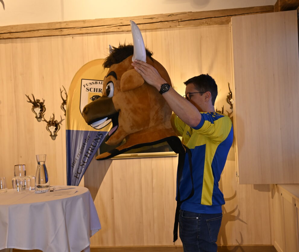 Auch die zahlreichen Veranstaltungen wie Kinderturniere, die Alpine Trophy, Profitrainingslager und weitere Aktivitäten wurden thematisiert, bevor das Vereinsmaskottchen offiziell vorgestellt wurde. Abschließend ging der Verein auf seine zentralen Werte ein und betonte die große Bedeutung der Nachwuchsarbeit. Respekt, Disziplin und Verlässlichkeit, Teamgeist, Fairplay sowie Persönlichkeitsentwicklung – „vo nüt kunt nüt“ – bilden dabei die Grundlage der Vereinsarbeit. Trotz eines aktuell herausfordernden wirtschaftlichen Umfelds konnte der FC Schruns in den vergangenen Jahren neue Sponsoren gewinnen. Der Verein nutzte den Abend, um seinen über 100 Sponsoren für ihr großes Engagement herzlich zu danken. Dabei wurde die enge Verbundenheit zwischen Verein, Sponsoren und regionaler Wirtschaft deutlich hervorgehoben. Der gelungene Abend klang bei einem gemütlichen Beisammensein mit Essen und Getränken aus und fand seinen Abschluss in der Schurlebar bei Livemusik. Zahlreiche Sponsoren gratulierten dem FC Schruns zu dieser rundum gelungenen Veranstaltung.